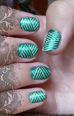 Dies liegt wohl an einer Reaktion zwischen dem Lack Outtabound von China Glaze (grün), meinem weißen Stampinglack von Candynails und dem Topcoat von Catrice.....ungewollt aber schön :)